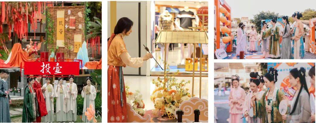 活动现场植入古代人物,安排工作人员扮演古代人物等关键角色,分布在各点位与游客进行互动。每天设置不同的游戏互动项目,如对诗、石头剪刀布等,游客挑战成功通关印章。